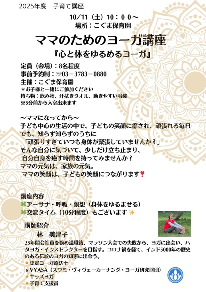 大好評のヨーガ講座『心と体をゆるめるヨーガ』の10月開催ご案内です!